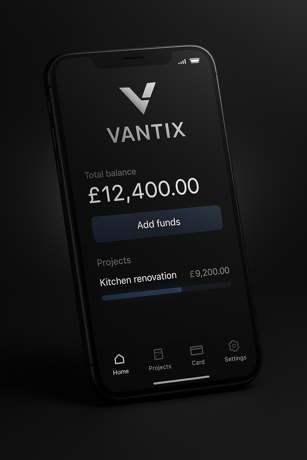 Whether you fund the job yourself or use credit, VANTIX keeps your project money organised, protected and flowing properly. From deposit to final payment.